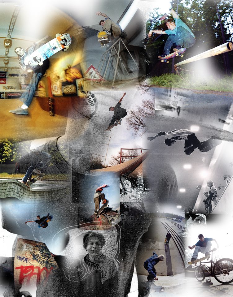 Alex Brejcha aka Piškot. Tu přezdívku dostal od Prasoráda ještě ve Fučíkárně když měl asi metr na výšku a bylo mu deset let. Pak povyrostl do normální velikosti, zamiloval se do Stalina a stal se jedním z průkopníků tamního streetu. V nohách měl techniku a v hlavě switch, takže asi chápete, jak to vypadalo. Dělal dlouhý sérky na mramoru, schodech a zídkách, rádiusům se vyhejbal obloukem. Z osobního hlediska je to člověk přírodní, se kterým často jezdíme na vody a čundry. Miluje cykloturistiku a točený pivo. Hraje skvěle na piáno. A taky brzo bude dvojnásobný otec. Toť Piškot.