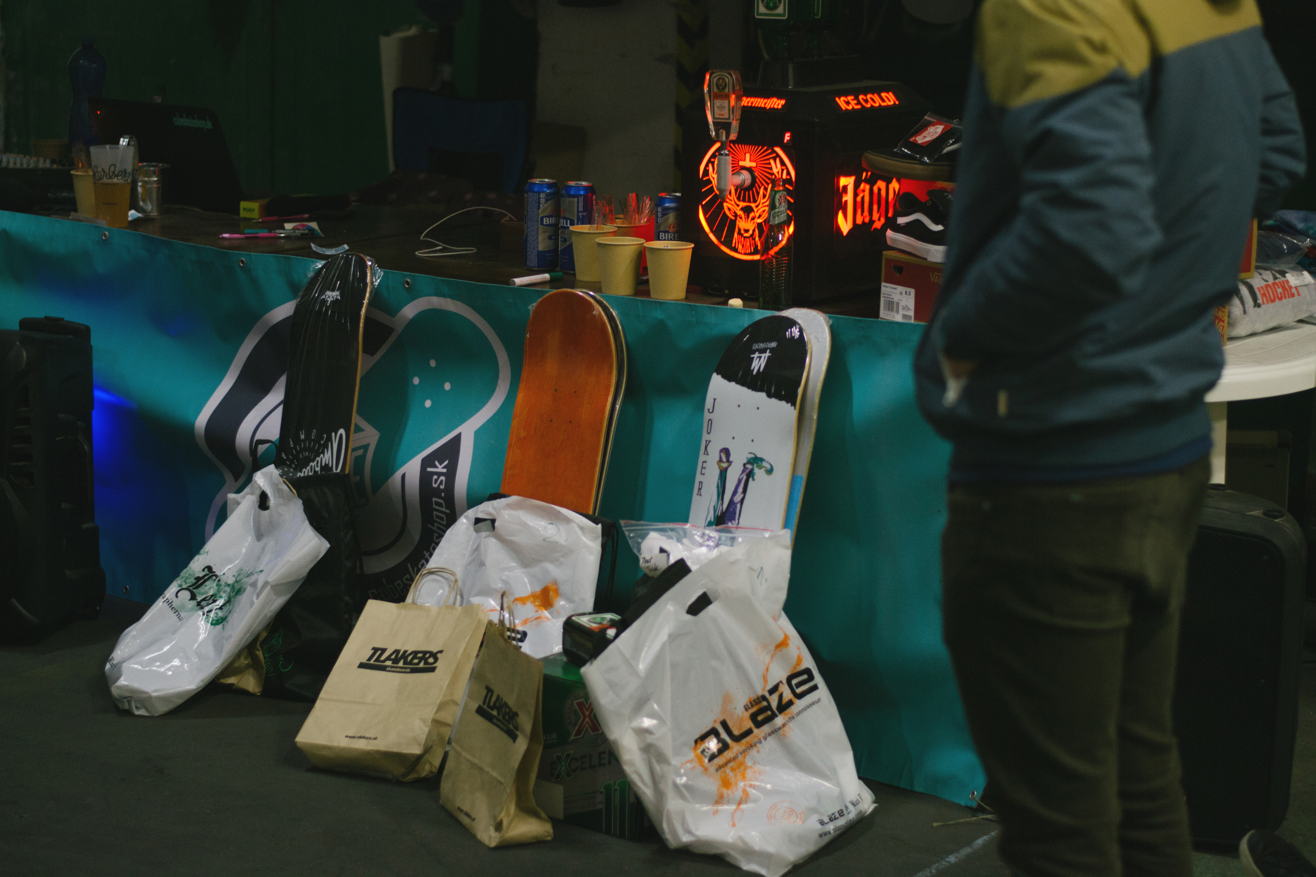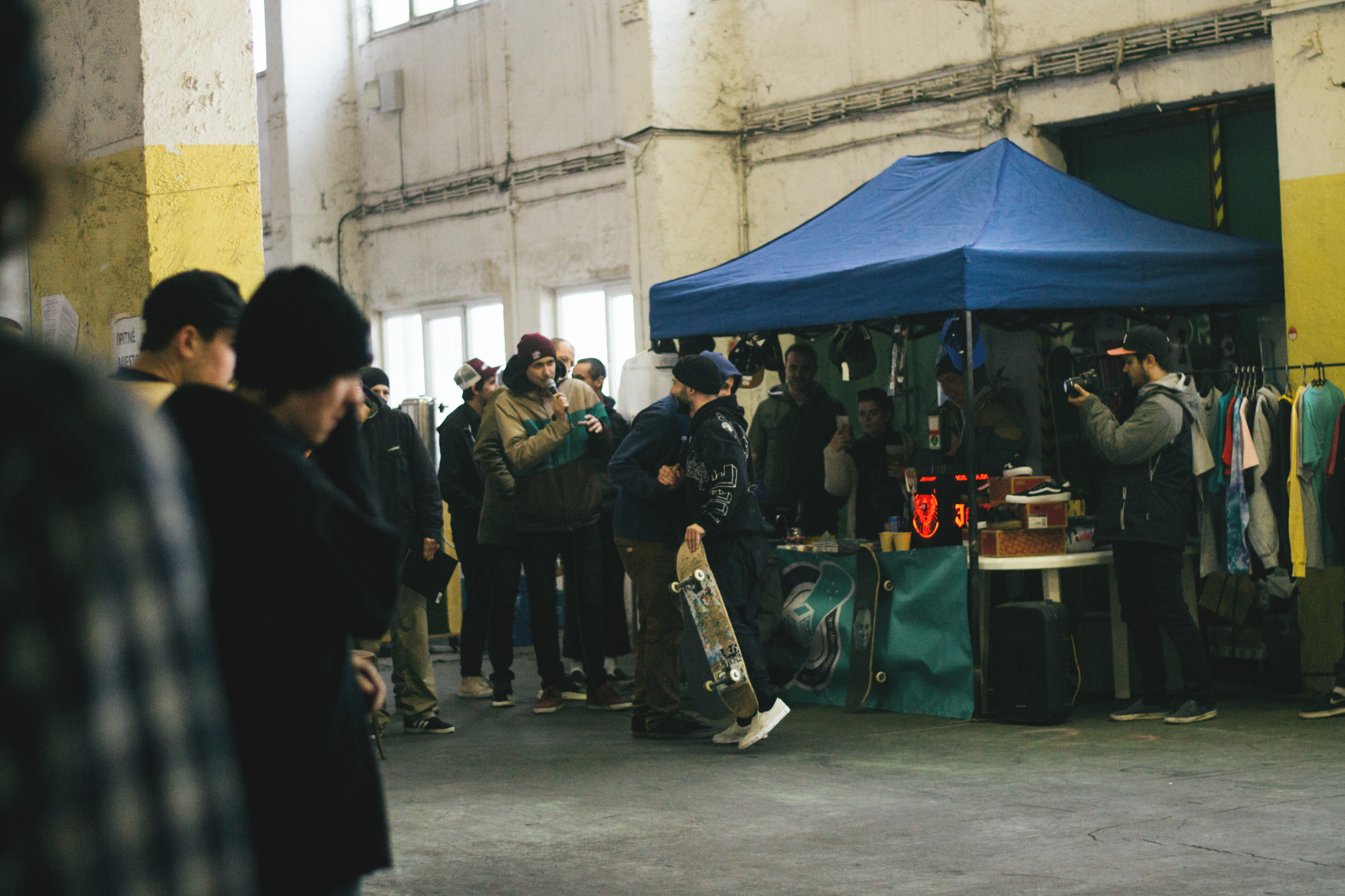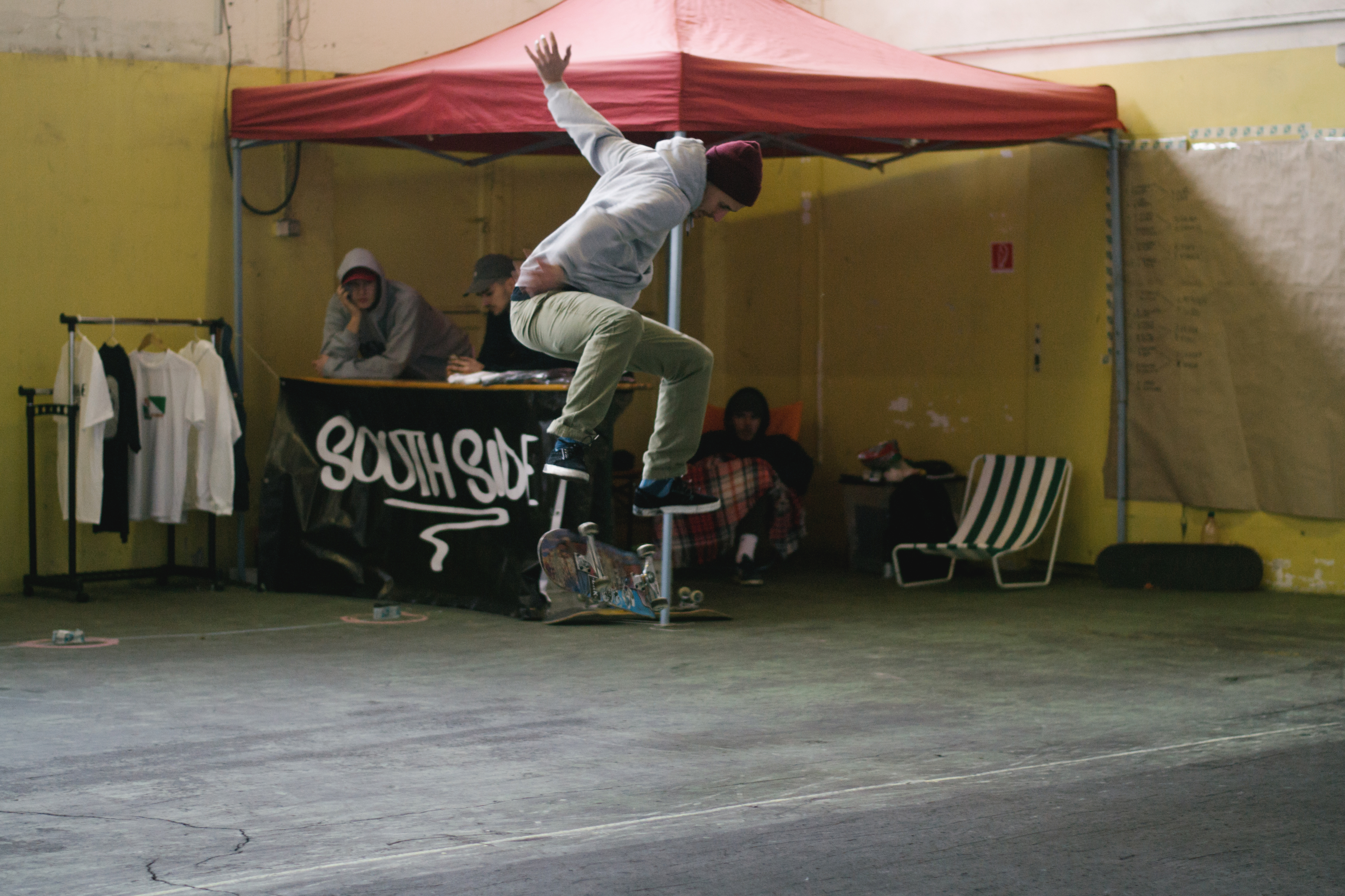Naše dve spojky zo Sketonu, majstri betónu Braňo Moravčík a Rudko Rokošný, pre nás pripravili parádny priestor vedľa Herbert skladu. Povrch haly bol čierny od niekoľkoročného prachu, no náš hygienic manager-Rudko, sa postaral aby vaše zadky po pádoch boli čisté ako hlava Mr. Poppera. Chalani z Herbertu zo SouthSide a Cube postavili svoje stánky a dorazili rideri z celého Slovenska. Nemohli chýbať ani majstri tlaku z Košíc a technický killeri z Maďarska.