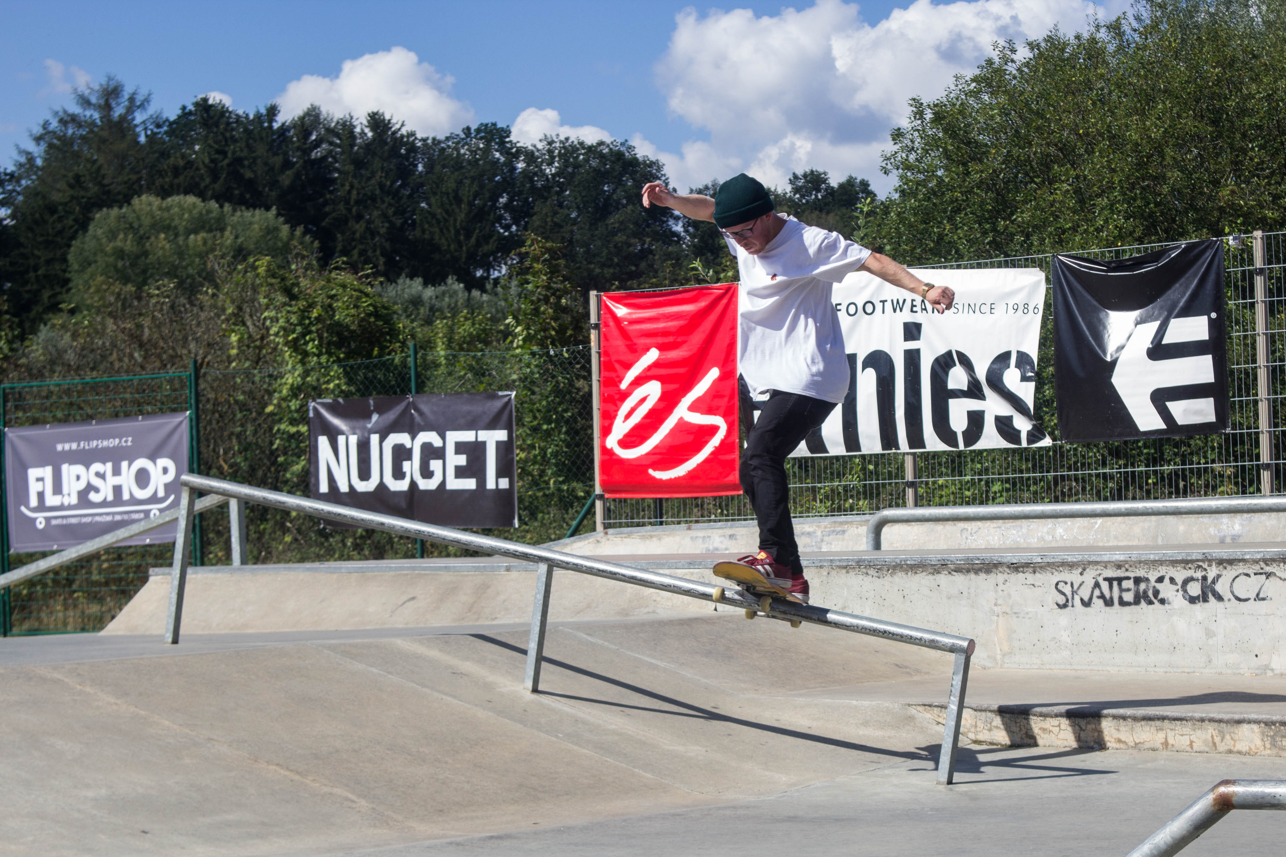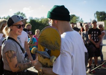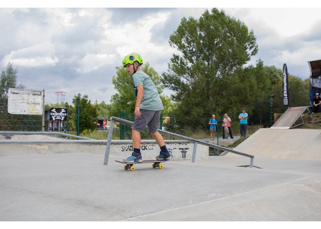 Kolem 11té dopolední už bylo vše ready, spustila se hudba a teploměr vystoupal až nad hranici 25 °C, zkrátka ideální stav pro skejtovačku v Září. Jako první to odpálili špunti ve věku 4-12 let, které navštěvují naší TaBoard Skate School. Na to že všichni se skejtem začínali někdy v Květnu, mohli jsme vidět kickturny v nejvyšší části dangerbanku, manual přes centrál, nebo drop z nejvyššího banku. Jestli to takhle půjde dál, vyrůstá nám tu nová generace zabijáků.