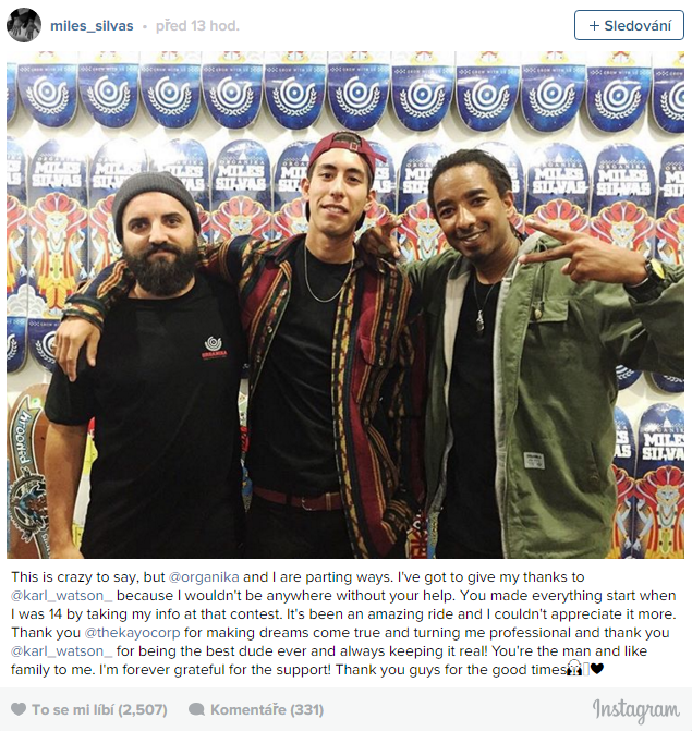 Vydáno: 04.12.2015A máme tu další teamový zemětřesení. Tentokrát v Organika skateboards. Tenhle skvělej team opustil Walker Ryan a Miles Silvas. A opět není jasný, kam povedou jejich kroky. Začíná v tom bejt pěknej bordel.