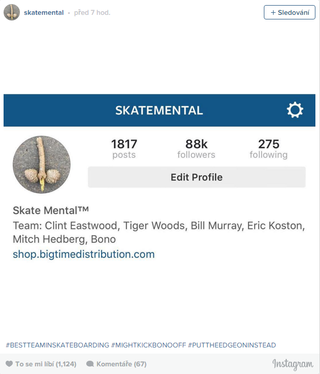 Vydáno: 21.12.2015Firma Skate Mental skateboards je hodně známá svejma vtípkama. Na jejich instagramu se objevilo nový složení teamu. Je jasný, že jména jako Clint Eastwood, Bono a Tiger Woods jsou určitě vtip. Ale mezi těmahle celebritama se objevil i Eric Koston. Jde o vtip nebo ne?