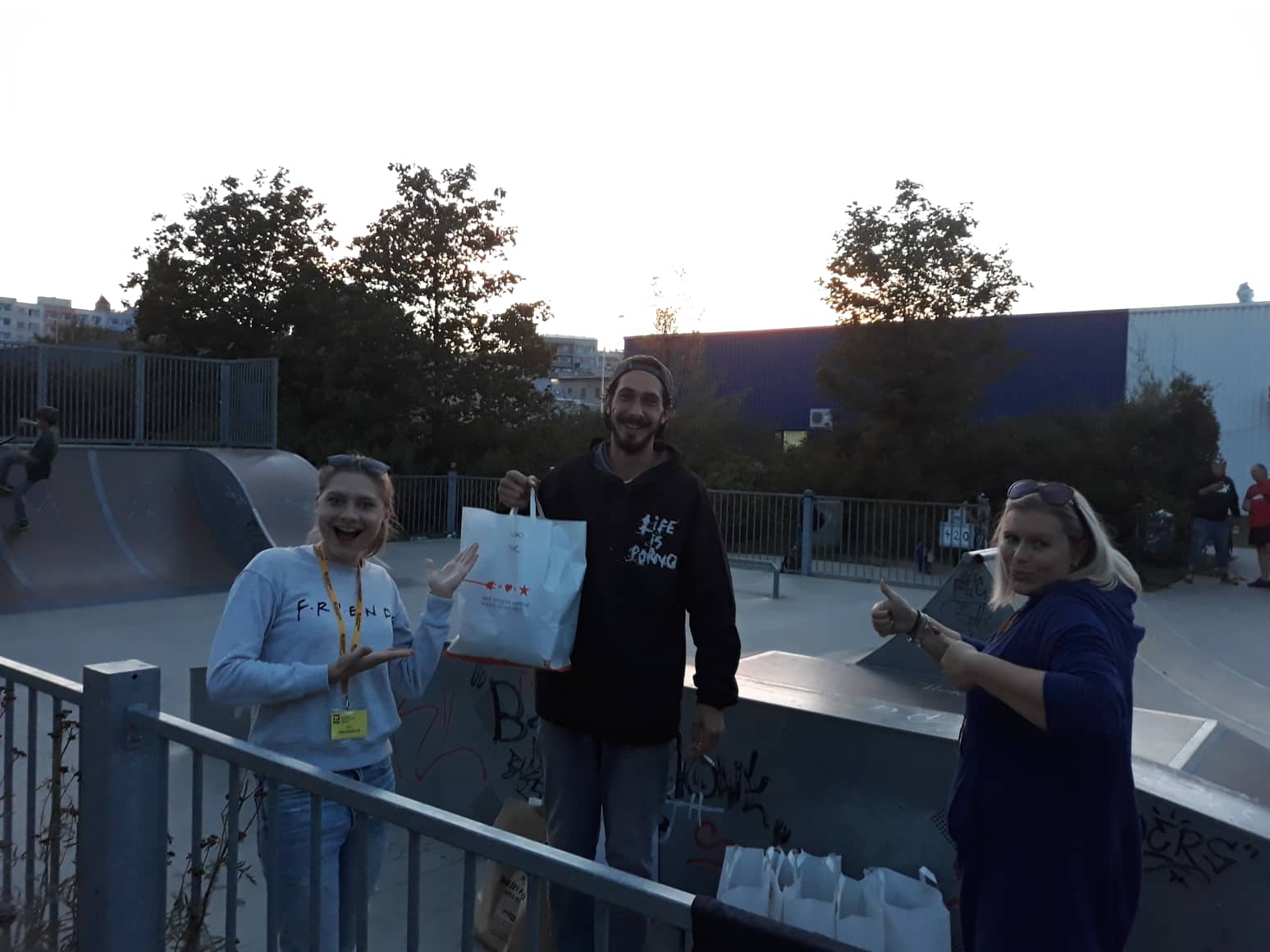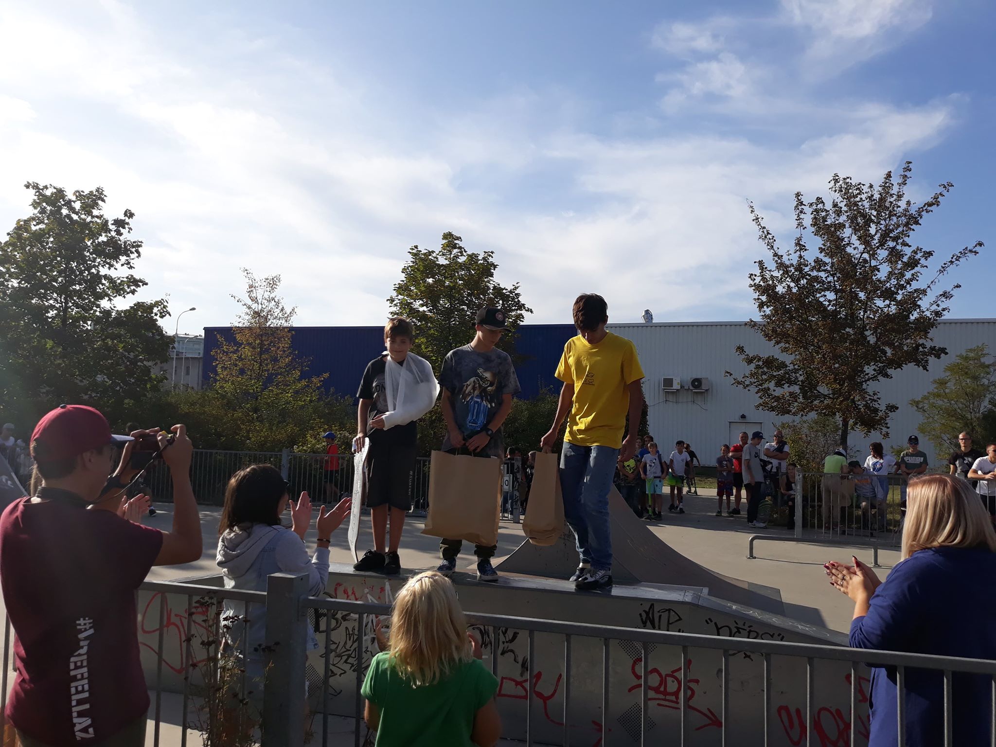Zpátky k závodům ale, v sobotu panovalo po delší době opět letní počasí a to přilákalo zhruba dvacítku skejtrů a tak padesátku fandů. Na programu dne byl Street do 16 let, Street nad 16 let, Street holek, Best Trick o peníze, Game of Skate a na závěr dne i oblíbenej Hippie Jump.