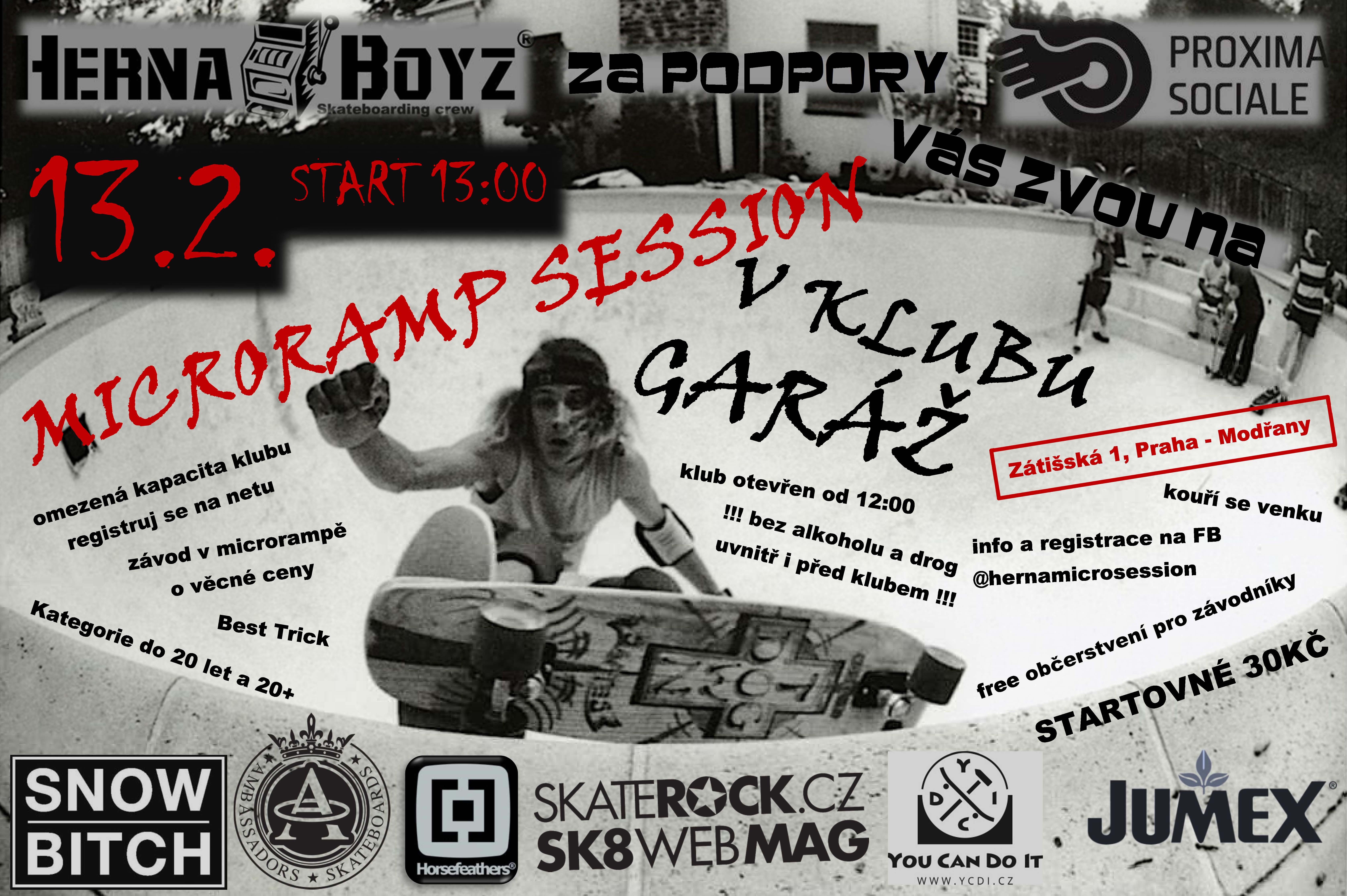 Vydáno: 20.01.2016V sobotu 13.února se od 13:00!!! uskuteční závody v microrampě v modřanském klubu Garáž. Závody pořádá bandička Herna Boyz za podpory provozovatele klubu Proxima Sociale - služby v komunitě
