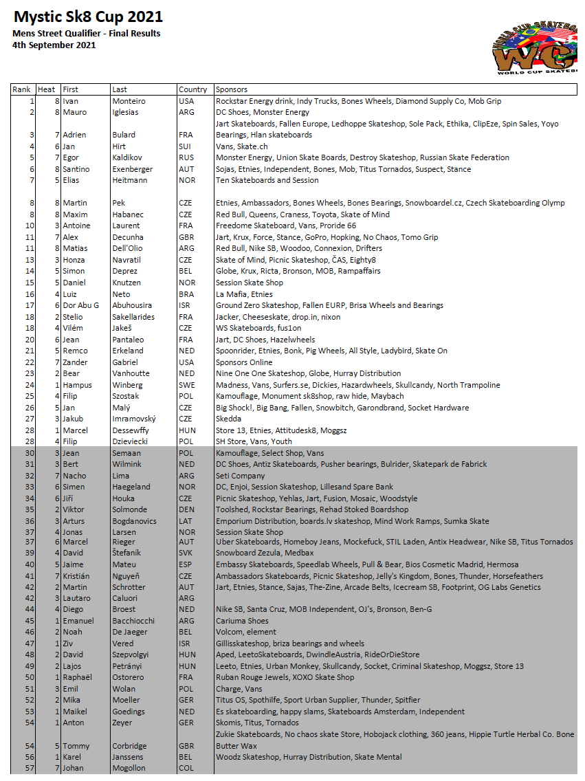 Největší pekla dne předváděli Ivan Monteiro s bs 270 nosebluntem na railu na áčku, Mauro Iglesias s crooked nollie flip out na railu na áčku na každej nebo s bs 270 lipslidem 270 out na kratší straně railu. Na třetím postupovým místě se usadil Adrien Bulard s nadupanou flipovou jízdou ve svým typickým vyklidněným stylu. Za ním pak švýcarský rider Jan Hirt se smith grindem na dj pultu, crooked nollie flip out na railu nebo switch fs bluntslidem na railu.