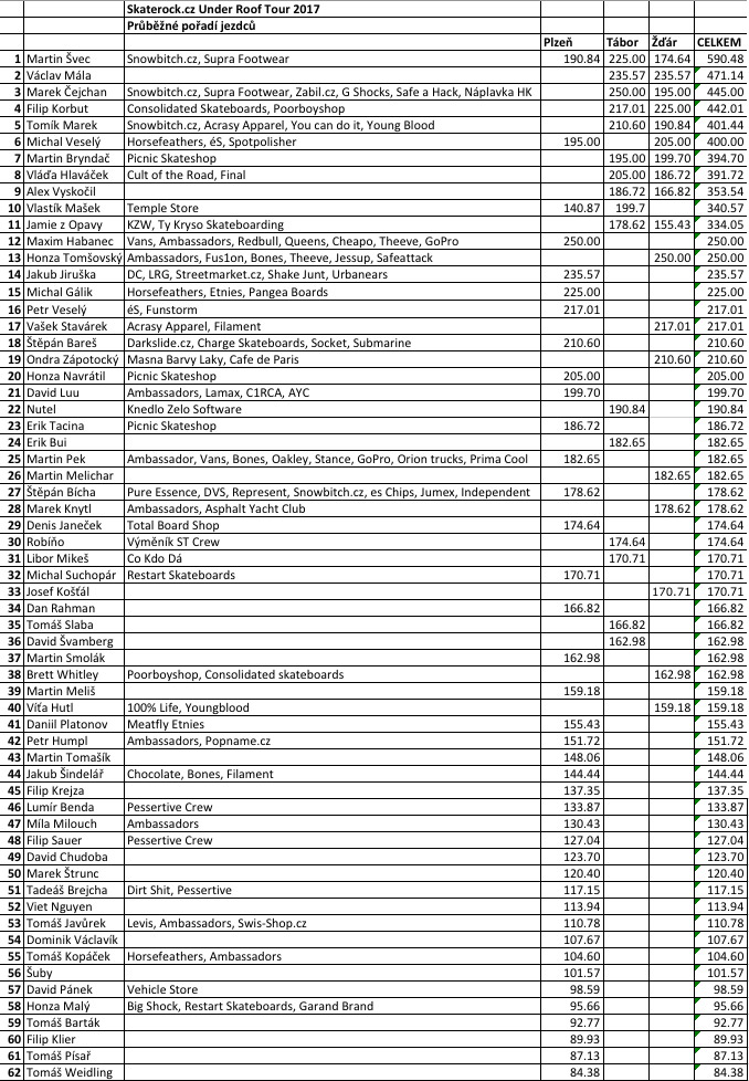 PRŮBĚŽNÉ POŘADÍ JEZDCŮ A ŽEBŘÍČEK SPOZORŮ!