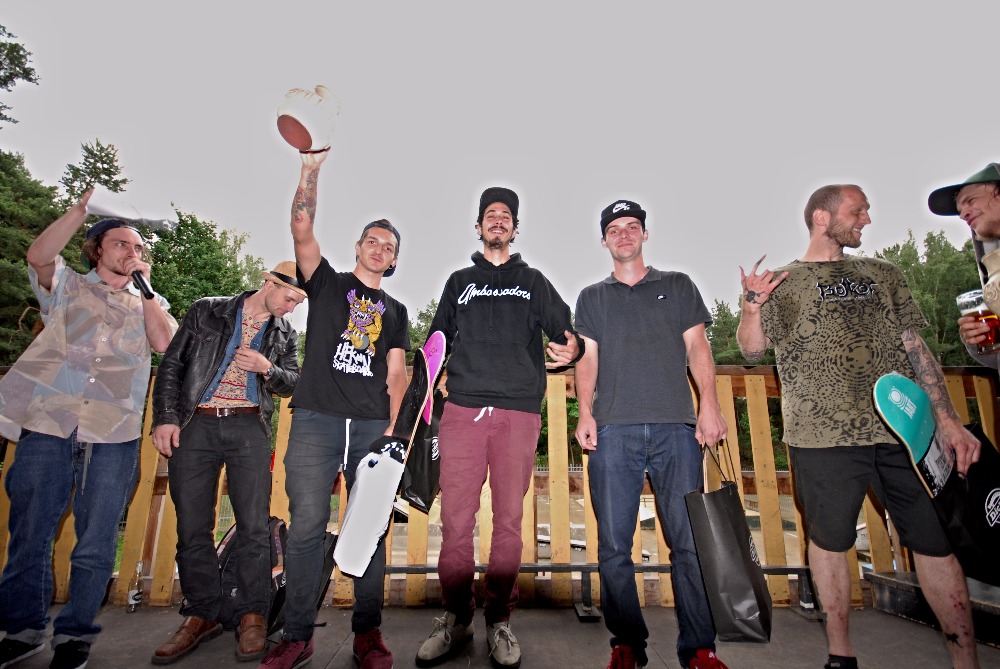 První dvě příčky obsadili jezdci z Prahy – Míla Milouch, který jezdí za Heroin skateboards a Karel Raichl, jezdec Ambassadors a Life is porno. Mila přesvědčil porotu například FS 50-50 na velkém railu z bangové vyšší strany nebo BS lipslidem tamtéž. Karel ovšem předvedl blunty na všechny strany, boardslide 270 out, ale bohužel si při posledním triku na velkém zábradlí, kde zkoušel flip crooked grind, hnul kolenem a jízdu neodjel čistě. Třetí dojel Abec (Jirka Brabec), který vykouzlil BS saladgrind na zábradlí nebo FS lipslide na velkém zábradlí. Při best triku se rozhodovalo mezi Honzou Horákem (360 flip ze schodů) a Abecem (FS blunt na zídce z pěti schodů). Nakonec porota zvolila stylovou 360 a Honza si tak odnesl fajnový kolečka JART.