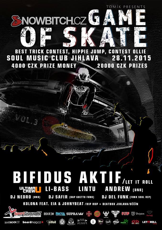 Vydáno: 23.10.2015Tradicí se nám stává Snowbitch Game of Skate v Jihlavě a opět v Soul music clubu, který nám nabízí nejlepší podmínky pro skateboarding. Zapište si do diáře 28. listopadu a žádnej skejtr by neměl chybět!!